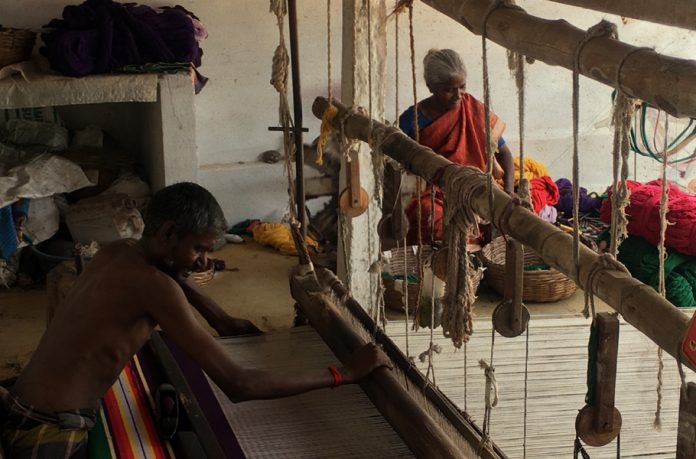 It’s nearing lunchtime. In the scorching heat with temperatures already soaring over 40 degrees Celsius, two bare-bodied men and two women sit on the cow dung-smeared mud floor to weave Jamakkalam (thick cotton carpets) at Kuruppanaickenpalayam village in Tamil Nadu’s Erode district.