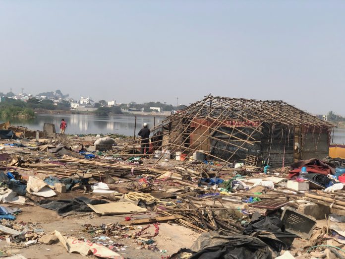 With civic authorities building pressure on them to shift to a safer place, they have been facing another challenge—to dismantle the bamboo huts and put them up at another place, a kilometre away. A good Samaritan, Omer, volunteered to rent out his open land to these families.